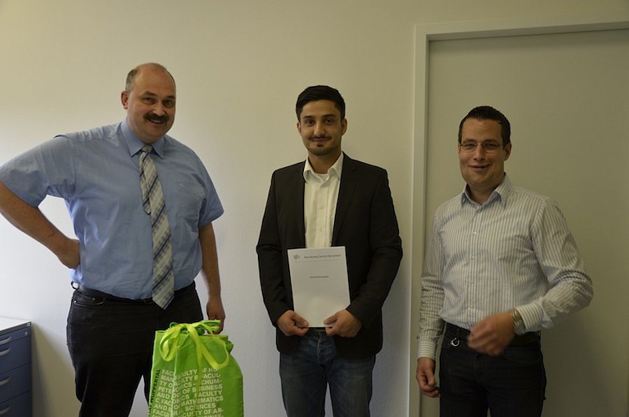 Zum erfolgreichen Berufsabschluss von Herrn Akbar Amin gratulieren wir! Herr Amin war der erste Auszubildende als Technischer Zeichner am Lehrstuhl für Konstruktion und hat nun seine Ausbildung mit Erfolg abgeschlossen. Zugleich wird er aber auch der letzte sein, da ab dem nächsten Jahrgang technische Produktdesigner ausgebildet werden. Der Beruf des Technischen Zeichners wird durch diese neue Bezeichnung abgelöst. Wir wünschen Herrn Amin für seine weitere berufliche Laufbahn alles Gute.