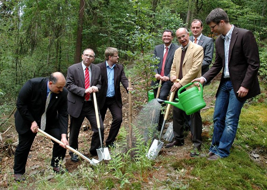 Various stakeholders are inviting people to the congress for renewable energies on 15 July 2011 on the Freudenberg campus of the University of Wuppertal. The congress programme was presented today. At the same time, the participants emphasised climate protection with a symbolic action: they planted six copper beeches in the Brückenpark Müngsten.